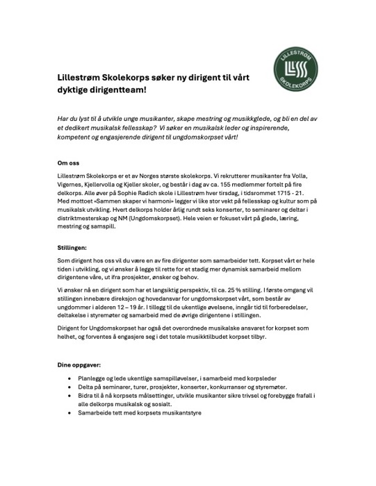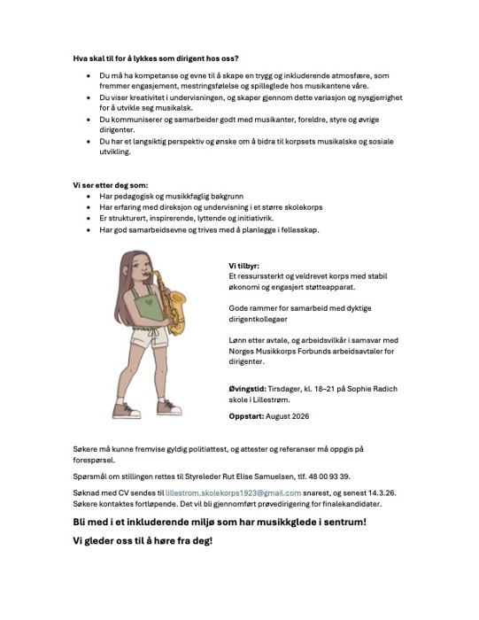 Lillestrøm Skolekorps søker ny dirigent til vårt